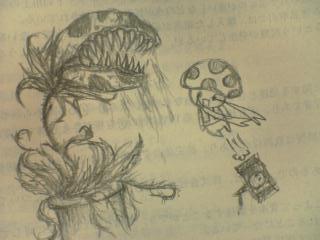 授業中にちょこちょこ描いてた孔雀もどきを背景に・・・